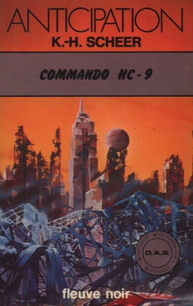 Fiche de Commando HC-9Titre : Commando HC-9 (Tome 2 sur 42 – D.A.S. (Département Anti-espionnage Scientifique)) Première page de Commando HC-9« L’enveloppe était de format oblong et de cette qualité bon marché que l’on trouve dans n’importe quel « libre service ». Je la tenais d’une main alors que, de l’autre, je fouillais l’intérieur du tube pneumatique qui relie mon appartement, comme les autres de cette luxueuse maison meublée, à ma boîte aux lettres située au rez-de-chaussée dans le grand hall de l’élégant immeuble. Non, il n’y avait pas d’autre courrier pour moi. Je ne suis pas homme à recevoir beaucoup de lettres et encore moins des lettres banales. Et si une enveloppe de format oblong m’est adressée, il y a anguille sous roche. J’attendis l’apparition du signal vert signifiant que la capsule qui avait transporté ma lettre était revenue à sa place en bas. » Extrait de : KH Scheer. « DAS – Commando HC-9. » |