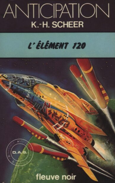 Fiche de L’élément 120Titre : L’élément 120 (Tome 3 sur 42 – D.A.S. (Département Anti-espionnage Scientifique)) Première page de L’élément 120« Que signifie pour vous l’expression : détente adiabato-isotropique » ? Expliquez-moi, en vous servant du tableau n° 15, ce qu’est la constante de désintégration de l’hydrogène ainsi que son utilité comme comburant d’un propulseur atomique de fusées. Définissez avec exactitude les vitesses d’éjection (Wa/th) en tant que fonction de la température de mise en route (Ti), et du rapport de décompression (Pi/Pa) de l’hydrogène, compte tenu de ce que l’hydrogène, en tant que gaz à deux atomes dissociables, a la même valeur mathématique que l’oxygène. Pourquoi peut-on s’attendre à des vitesses d’éjection particulièrement élevées en utilisant l’hydrogène comme carburant ? Enumérez les avantages et les inconvénients de son emploi, en commençant par les avantages. Le docteur ès sciences Tayne sourit aimablement, ses yeux bleus brillaient derrière ses lunettes. Ses mains jouaient avec un stylo à bille. Mais cette espèce de tic n’était pas la seule raison de sa nervosité. » Extrait de : KH Scheer. « DAS – L’élément 120. » |